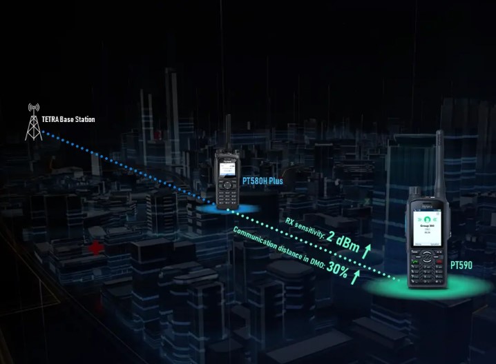 O rádio portátil TETRA PT590 para Missão Crítica é um equipamento da nova geração da Hytera. Com tecnologia de áudio inovadora, desempenho de RF líder de mercado e GNSS de dupla frequência, o PT590 possui melhor qualidade de voz, cobertura de comunicação mais ampla e posicionamento preciso, garantindo comunicações críticas onde estiver. O rádio PT590 é um equipamento fácil de usar graças ao seu design ergonômico, porta USB tipo-C profissional, capacidade de gerenciamento remoto e interoperabilidade com acessórios e controle de voz.