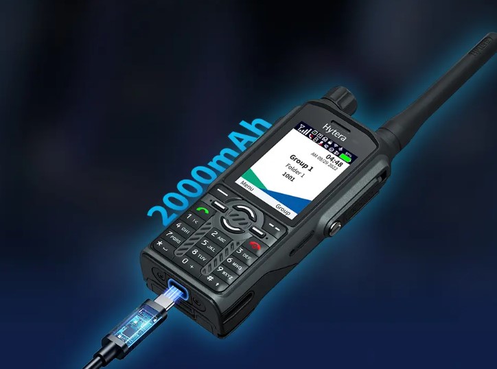 A bateria de polímero de lítio de 2.000 mAh, juntamente com a inovadora tecnologia de baixo consumo de energia, pode durar até 22 horas no ciclo de trabalho 5-5-90. Além dos contatos de carregamento tradicionais, o PT590 possui uma porta USB tipo-C adicional que permite que o rádio seja carregado com energia elétrica ou mesmo com um banco de energia em qualquer lugar e a qualquer momento. O carregamento rápido de 18W pode carregar totalmente o PT590 em apenas 1,5 horas. Mesmo com apenas 30 minutos de carga rápida, o PT590 pode ter pelo menos 10 horas de energia para um turno longo e inesperado.