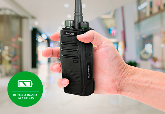 Design ergonômico e resistente, alto-falante potente e bateria de longa duração com recarga rápida (completa em até 3h) tornam o produto uma ferramenta ideal para comunicações constantes.