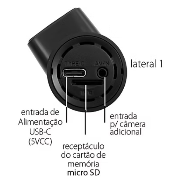 Gravação com cämera rotativa incorporada (visão frontal ou cabine) e com cämera adicional (para instalaçào interna no veículo);