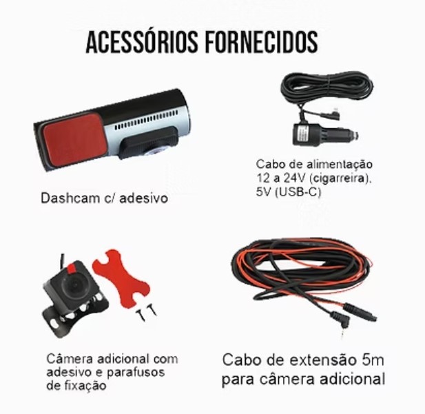 Gravação em Loop: Nunca se preocupe em ficar sem espaço de armazenamento. A dashcam suporta um cartão de memória de até 128GB para guardar muitas horas de gravação. Os arquivos serão automaticamente apagados a partir do primeiro vídeo gravado quando a memória estiver cheia