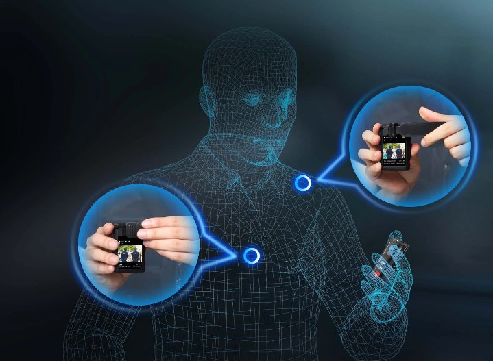 Os oficiais podem usar a GC550 na dragona ou no bolso frontal usando diferentes acessórios de transporte. Um clipe giratório de 360° permite que os oficiais girem facilmente a mini câmera corporal GC550 e encontrem o melhor ângulo de gravação.